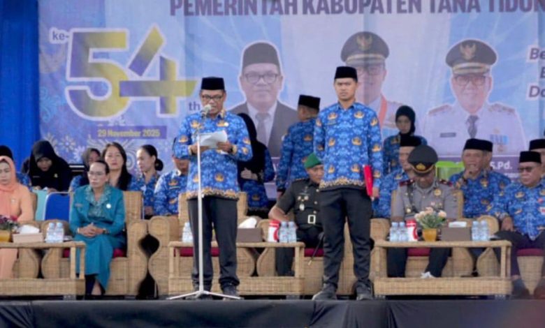 TANA TIDUNG – Upacara peringatan Hari Ulang Tahun (HUT) ke-54 Korps Pegawai Republik Indonesia (KORPRI) Tahun 2025 berlangsung khidmat di Ruang Terbuka Hijau (RTH) H. Joesoef Abdullah, pada Sabtu (29/11/2025). Dengan mengangkat tema “Bersatu, Berdaulat bersama KORPRI, Mewujudkan Indonesia Maju”, kegiatan ini menjadi momentum penting bagi seluruh Aparatur Sipil Negara (ASN) di Kabupaten Tana Tidung.